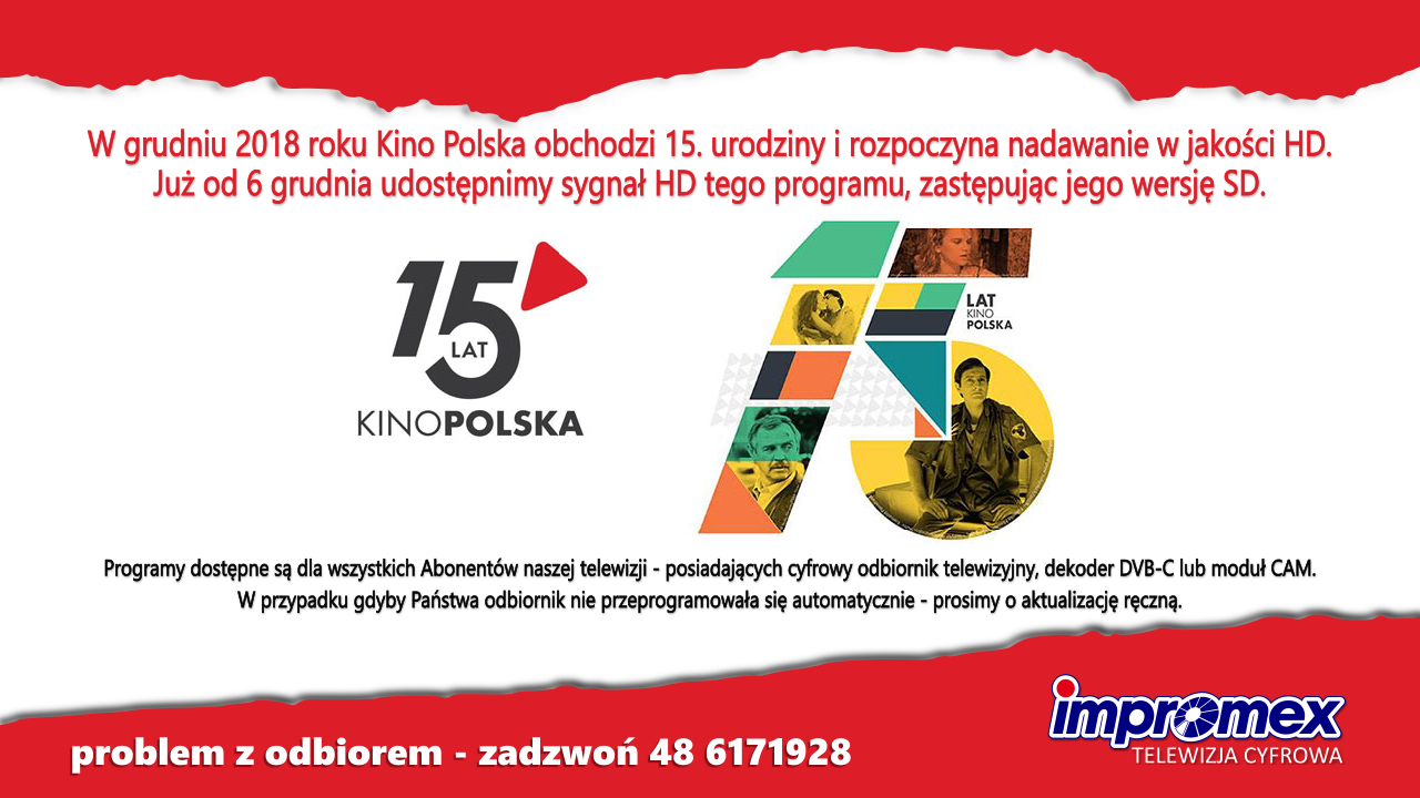A od 6 grudnia - program Kino Polska w wersji HD zastąpił w naszej sieci kablowej jego wersję SD (standardową).